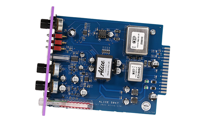 The Alice 504T mic pre is a 500 Series preamp with transformer-balanced input, ultra low-noise gain stages and a classic Ted Fletcher limiter for warm, controlled vocal and instrument recording.