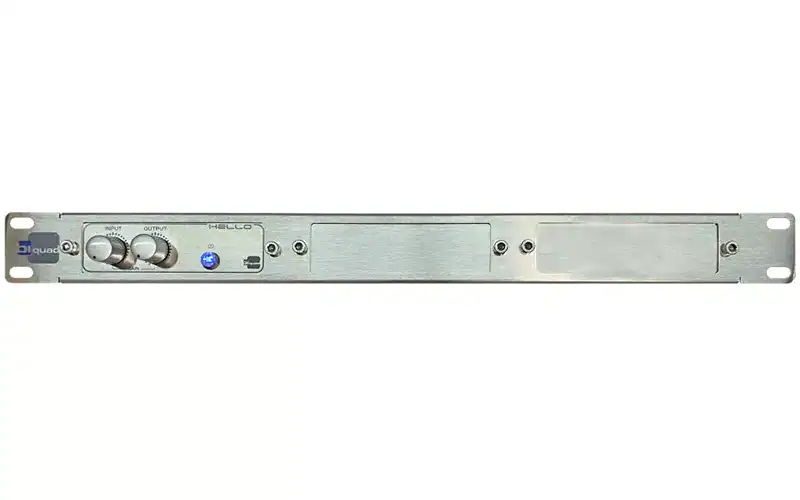 The Biquad HELLO 1 is a one-line hybrid telephone interface designed to meet the standard rack specifications, making it an excellent choice for use in radio and TV studios. This physical telephone interface is analog and passive, featuring an identical circuit to all other ALO models. Notably, it does not require an external power supply, ensuring user-friendliness.