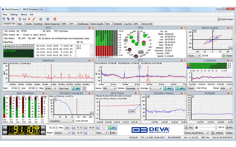 The DEVA Band Scanner 2 offers precise FM signal analysis, RDS decoding, and GPS-linked coverage mapping for professional broadcast engineers.